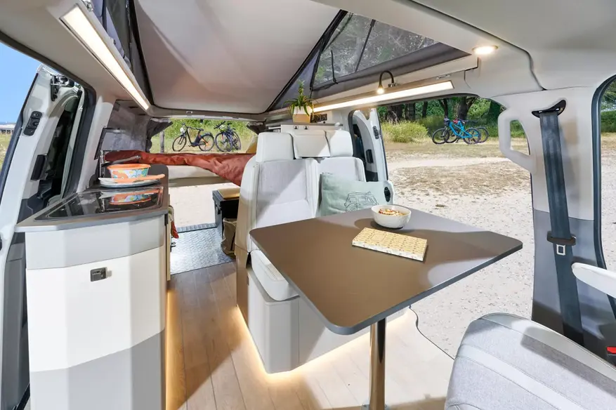 Our camper van rental with kitchen and bathroom layouts feature intelligent design that maximizes functionality without wasting space. You’ll find everything needed to create delicious meals, from simple breakfasts to elaborate dinners.