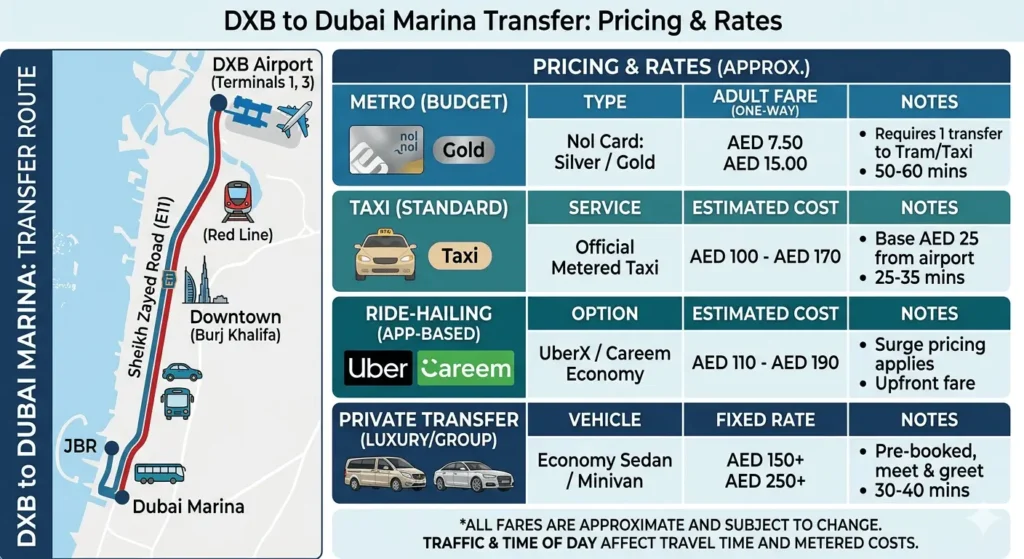 DXB to Dubai Marina Transfer: Pricing & Rates